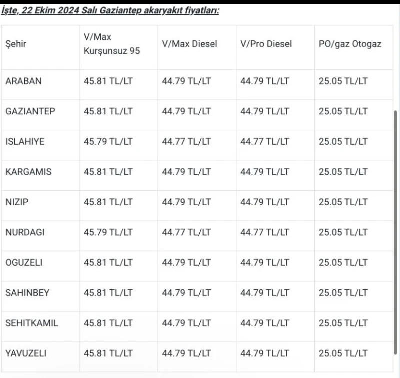 Güncel Akaryakıt Fiyatları: