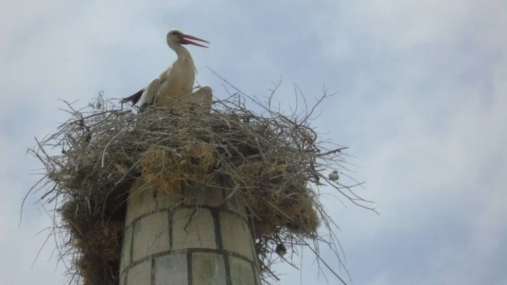 İlkbaharda kente gelmeye başlayan leyleklerden biri, geçen yıl alemin yerine yuva yaptı. Bunun üzerine minarenin onarımı ertelendi.