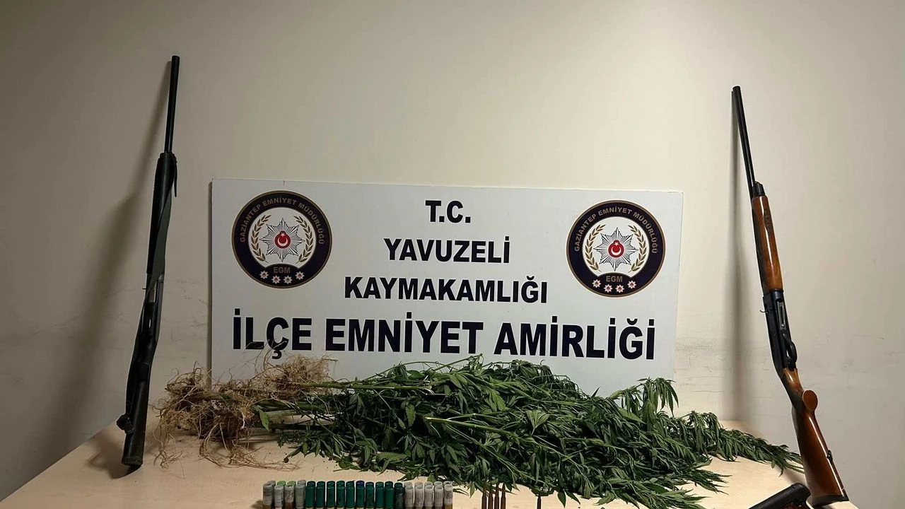 Gaziantep’in Yavuzeli ilçesinde bir ikamete yapılan operasyonda 2 av tüfeği, 1 ruhsatsız tabanca, 75 fişek ve 12 adet hint keneviri ele geçirildi. 1 şüpheli gözaltına alındı.