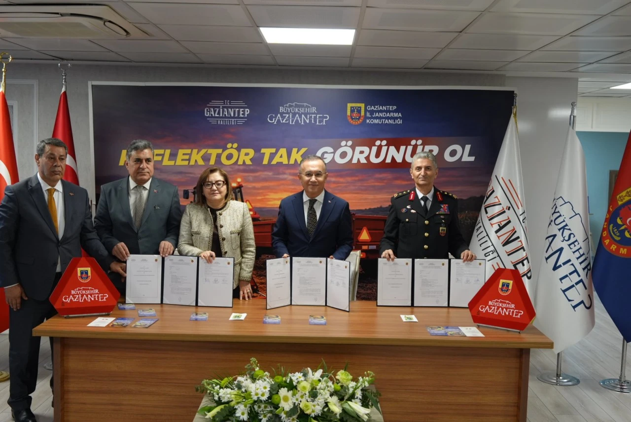 Gaziantep Valiliği koordinasyonunda, Gaziantep Büyükşehir Belediyesi ile İl Jandarma Komutanlığı arasında imzalanan “Reflektör Tak, Görünür Ol” projesiyle, il genelindeki çiftçilere 10 bin adet reflektör dağıtılacak.