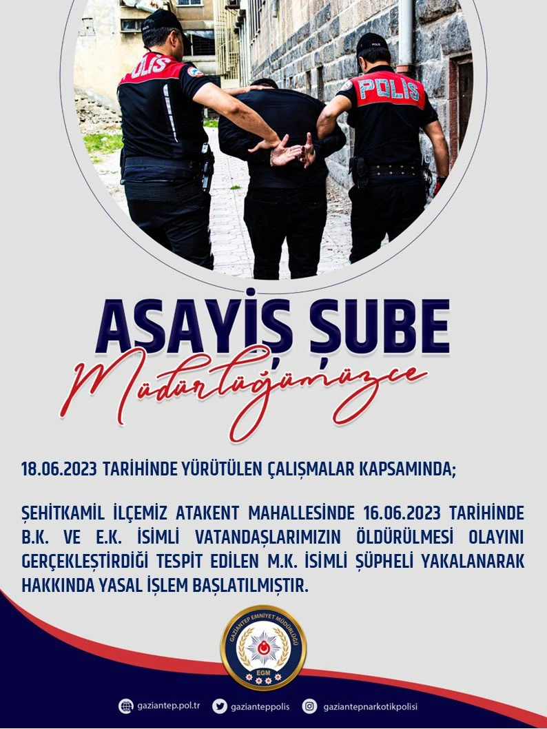 2 gün önce Gaziantep’in Şehitkamil ilçesine bağlı Atakent Mahallesi’nde Mertcan Köse (25), boşanma sonrası 4 aylık çocuklarının velayeti için adliyede atılan son imzaların ardından eski eşi Bilge Kaya ve kayınpederi Ertuğrul Kaya'nın bulunduğu aracı takip etti. Aracı durduran Köse, araçta bulunan eski eşine ve kayınpederine pompalı tüfekle defalarca ateş etti.