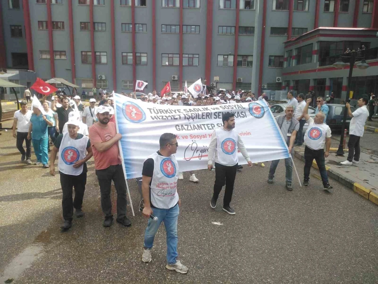 Gaziantep Üniversitesi Hastanesi’nde görev yapan doktor ve hemşireler, uzun süredir bekledikleri maaş düzenlemelerinin yapılmaması üzerine bugün hastane önünde grev başlattı. Sabah saatlerinde toplanan sağlık çalışanları, "Sadaka değil toplu sözleşme" sloganlarıyla tepkilerini dile getirdi.