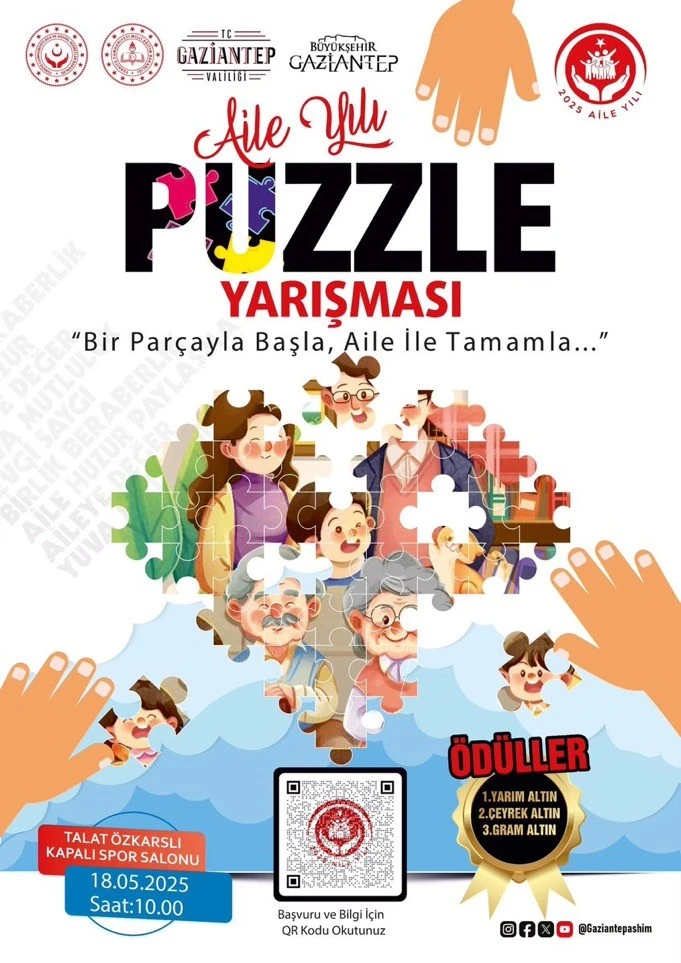 “Bir Parçayla Başla, Aile ile Tamamla…” sloganıyla düzenlenecek olan Puzzle Yarışması, aile olmanın sıcaklığını ve birlikte başarmanın mutluluğunu yaşatmayı hedefliyor. 18 Mayıs 2025 Pazar günü Talat Özkarslı Kapalı Spor Salonu’nda gerçekleştirilecek etkinlik, saat 10.00’da başlayacak. Yarışmada hem eğlence hem de ödüller katılımcıları bekliyor.