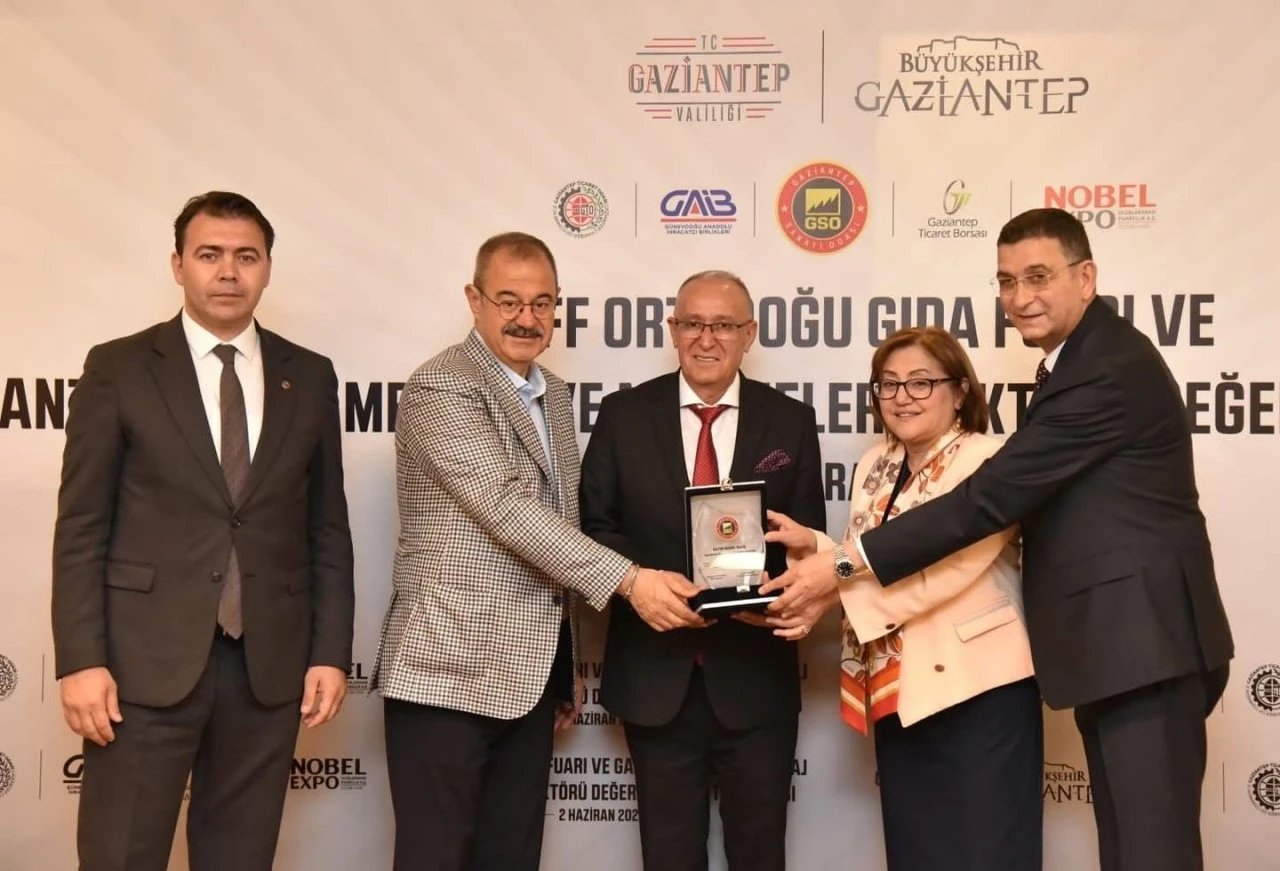 Fuarın gıda komisyonundaki katkıları dolayısıyla verilen plaket, Gaziantep Büyükşehir Belediye Başkanı Fatma Şahin, Gaziantep Sanayi Odası (GSO) Meclis Başkanı Adil Sani Konukoğlu ve GSO Yönetim Kurulu Başkanı Adnan Ünverdi tarafından takdim edildi.
