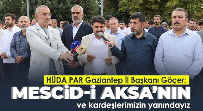 HÜDA PAR Gaziantep İl Başkanlığı Mescid-i Aksa davası için mücadele veren Filistinli Müslümanların, siyonist çetelerin vahşet ve zulümlerine karşı “Aksa Tufanı” adıyla başlattıkları operasyona destek amaçlı kitlesel basın açıklaması düzenledi