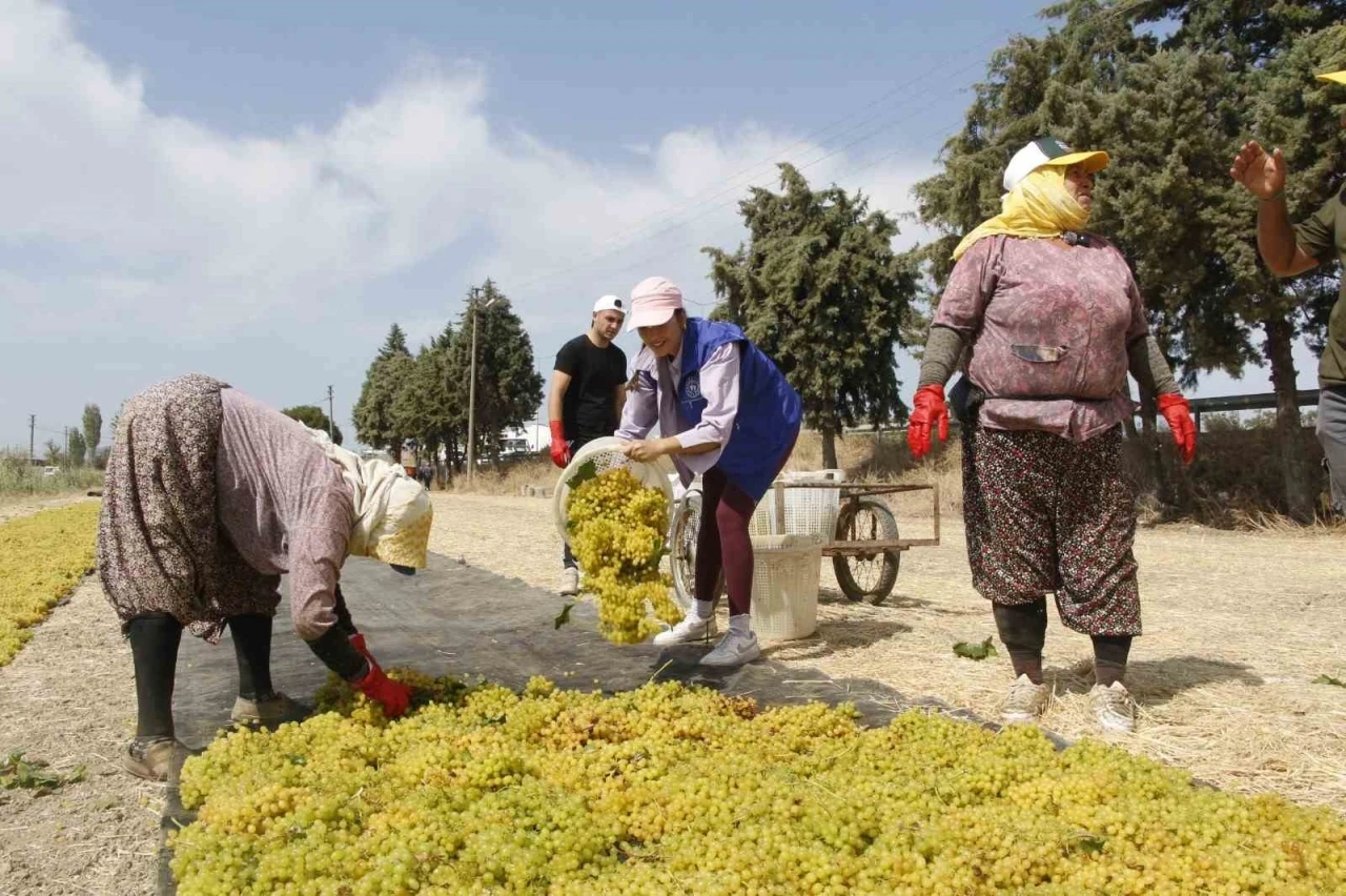 Gönüllü gençler, Manisa’nın dünyaca ünlü sultaniye çekirdeksiz üzümlerini özenle kesip sepetlere doldurdu. Üzüm bağında çalışan kadınlardan üretimin aşamalarını öğrenen gençler, üzüm sepetlerini traktörlerle sergiye taşıdı. Çiftçilere yardımcı olan gençler, üzümlerin bandırma işleminin ardından kurutulmak üzere sergiye yerleştirdi. Üretimi yerinde öğrendiler