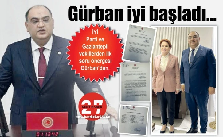 14 Mayıs 2023 seçimlerinde İYİ Parti Gaziantep milletvekili olarak Meclise giden Mehmet Mustafa Gürban, TBMM Başkanlığı’na İYİ Parti adına ve Gaziantep milletvekilleri içinde araştırma önergesi veren ilk isim olarak tarihe geçti.