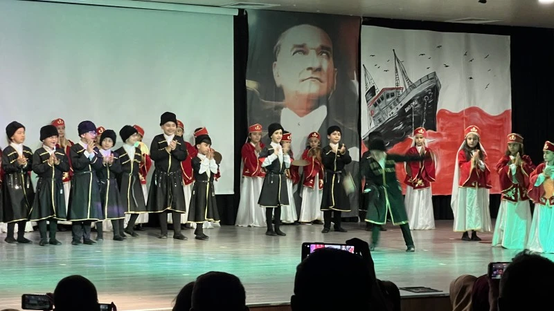 2/I sınıfı öğretmeni Aysel Demircioğlu rehberliğinde hazırlanan yıl sonu etkinliği, adeta kültürel bir şölen havasında geçti. Türkiye’nin dört bir yanını temsilen Ege’den Karadeniz’e uzanan folklor gösterileri sahnelendi.