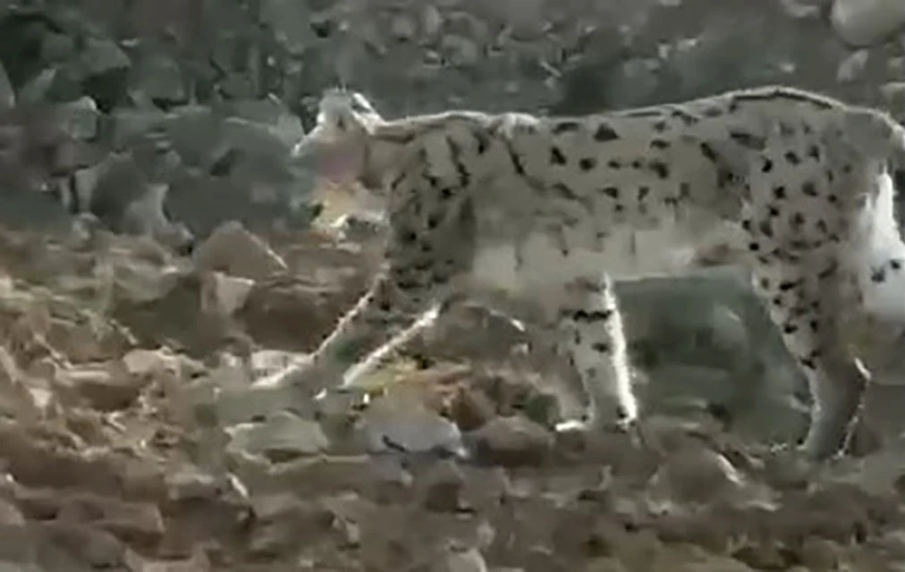 Hakkari’nin Çukurca ilçesinde nesli tükenme tehlikesi altında bulunan vaşak görüntülendi.