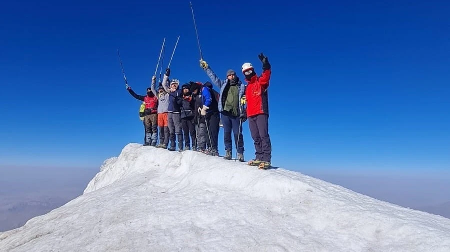 Ankara merkezli Kutup Yıldızı Dağcılık Kulübü üyeleri, Hakkarili dağcılar rehberliğinde Doğubayazıt’tan araçla başlayan yolculuklarını 3200 metre rakımlı birinci kamp alanında tamamladı. İkinci gün ise ekip; yüksek irtifa, düşük oksijen ve sert rüzgâra rağmen 4200 metre rakımdaki ikinci ana kampa ulaşarak zirve tırmanışı için geceyi beklemeye başladılar. 10 Ağustos gecesi saat 02.00’de başlayan final yürüyüşü, yaklaşık 5 saat süren yoğun bir eforun ardından sabahın ilk ışıklarıyla birlikte başarıyla tamamlandı. Ekip, Türkiye’nin en yüksek noktası olan 5137 metre rakımlı Ağrı Dağı zirvesine ulaşarak, üç günlük zorlu yolculuğu gururla noktaladı.