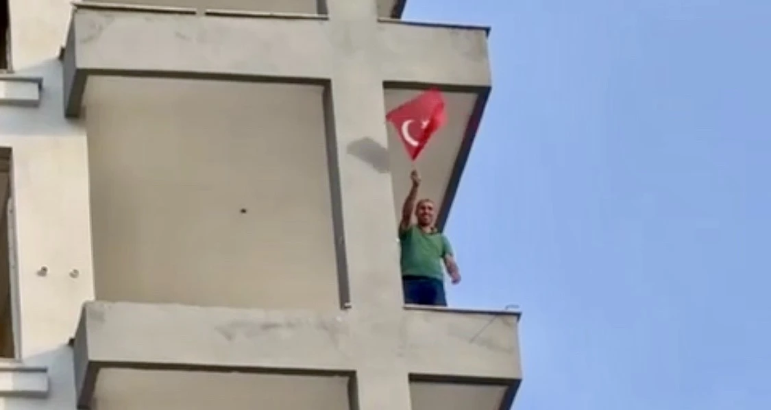 Asrın felaketinden etkilenen illerden biri olan Malatya’da ağır hasarlı binaların yıkımı sürerken, bir iş makinesi operatörü yıkımını yapacağı binada balkona asılı Türk bayrağını fark edince yıkımı durdurup bayrağı indirdi.