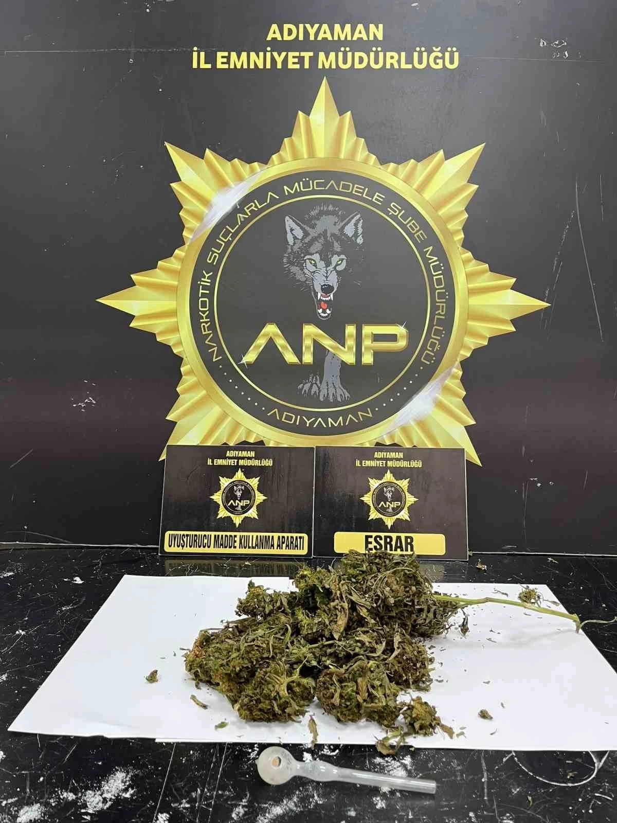 Adıyaman Cumhuriyet Başsavcılığı koordinesinde yürütülen uyuşturucuyla mücadele çalışmaları çerçevesinde Narkotik Suçlarla Mücadele Şube Müdürlüğü tarafından Z.C. ve G.A. isimli şahısların ev ve işyerlerine operasyon yapıldı. Operasyonda iş yerinin klima ünitesi içerisine zulalanmış 149 gram esrar dedektör arama köpeği tarafından tespit edilerek ele geçirildi. Uyuşturucu madde muhafaza altına alınırken 2 şahıs hakkında işlem başlatıldı.
