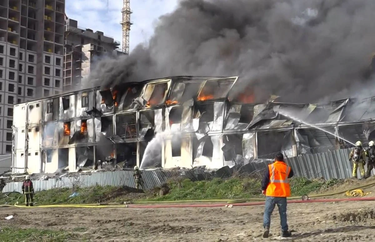 Esenyurt’ta 3 katlı işçi konteynerinde çıkan yangın kontrol altına alındı. 400 kişilik konteynerin alev alev yandığı anlar havadan görüntülendi.