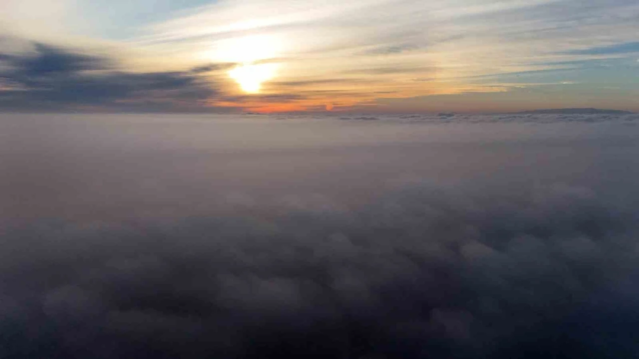 İstanbul’da etkili olan yoğun sis, bulutların üzerine gün doğumuyla havadan görüntülendi. Pamuk tarlasını andıran bulut denizi arasından süzülen güneş ışıklarının eşsiz manzaraları kartpostallık manzaralar oluştururken, Uludağ çekilen görüntülere yansıdı.