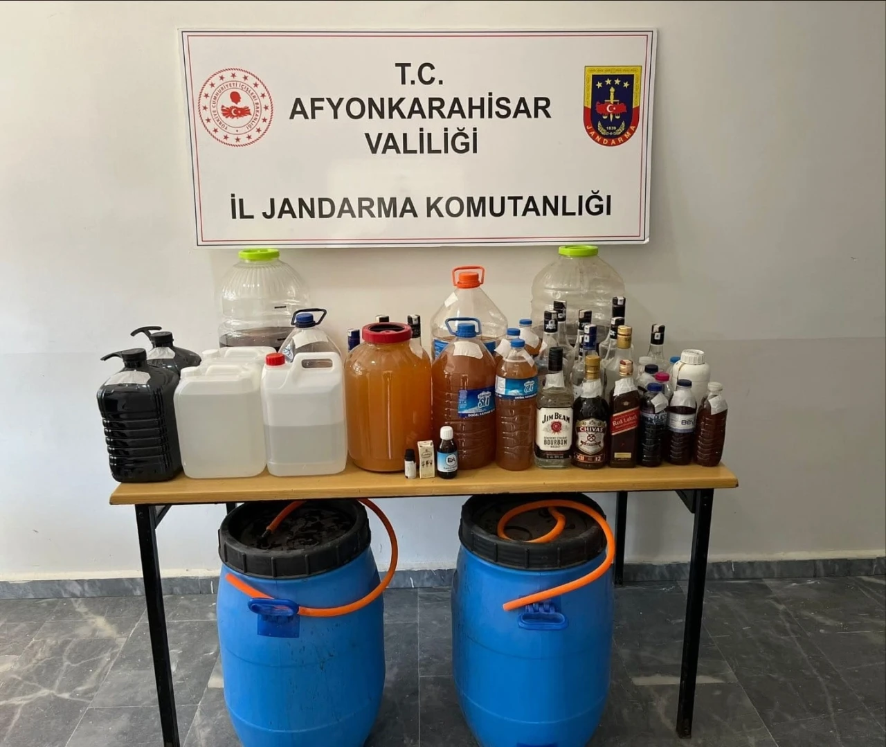 Afyonkarahisar’da jandarma tarafından gerçekleştirilen operasyonda sahte alkol yapımında kullanılan malzemeler ele geçirildi.