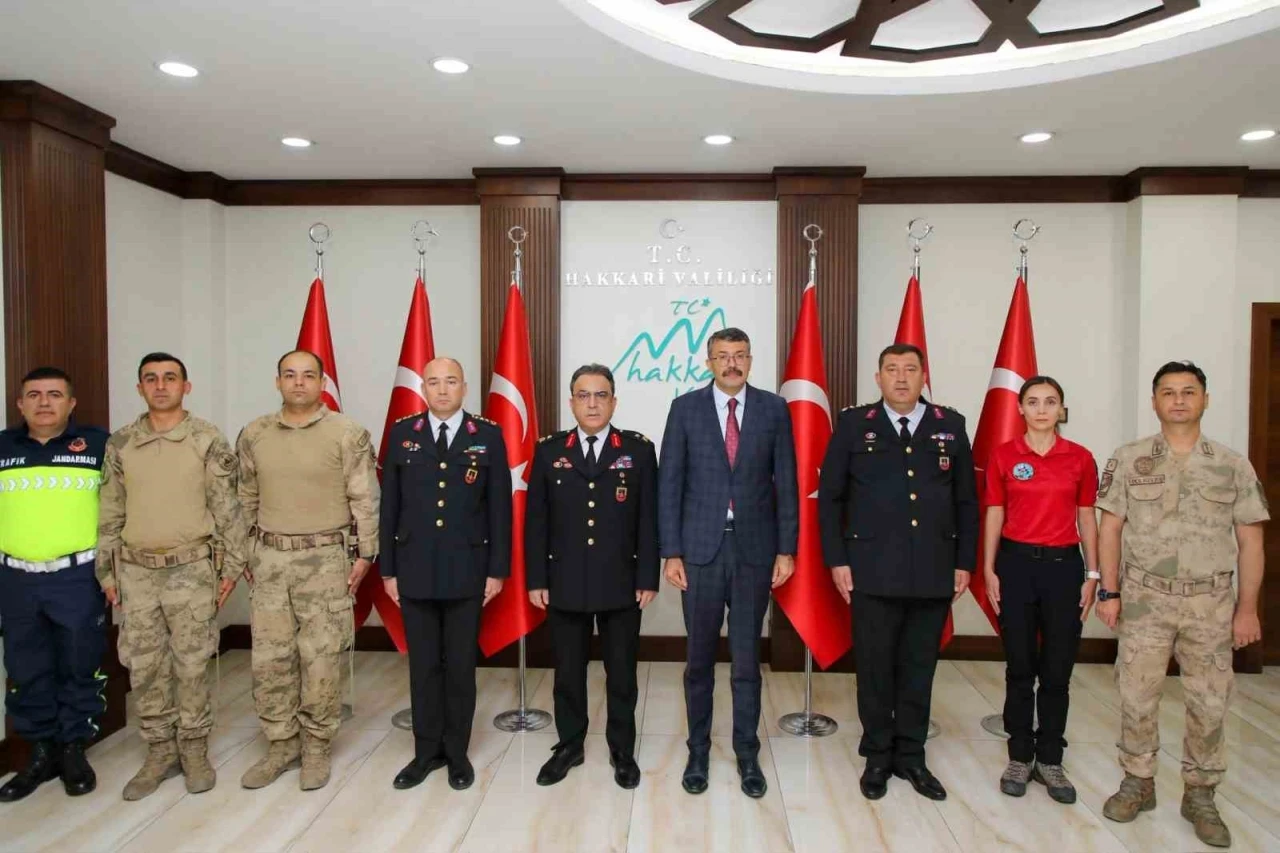 Hakkari İl Jandarma Komutanı Tuğgeneral Necip Çarıkcıoğlu, beraberindeki personel ile birlikte Hakkari Valisi Ali Çelik’i makamında ziyaret etti.