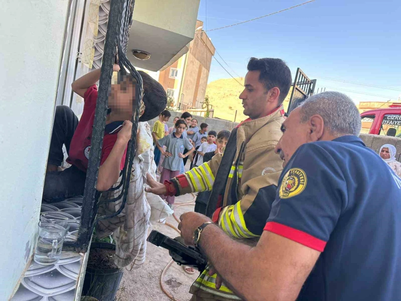 Şırnak’ın Cizre ilçesinde kafası pencerenin demir korkuluğuna sıkışan çocuk itfaiye ekiplerince kurtarıldı.