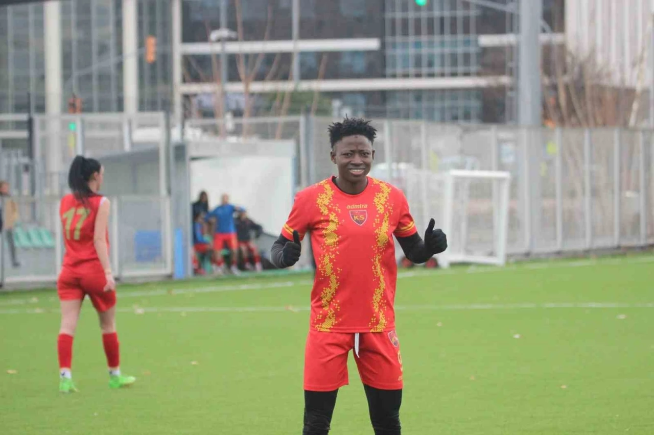 Auran Kayseri Kadın Futbol Kulübü’nün Nijeryalı golcüsü Kafayat Atoke Başhıru, Hatay Defne 1994 Spor maçında 5 gole imza attı.