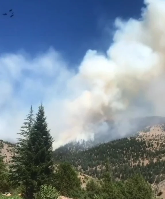 Bölgede ekiplerin yangını kontrol altına almak için mücadelesi sürüyor.
