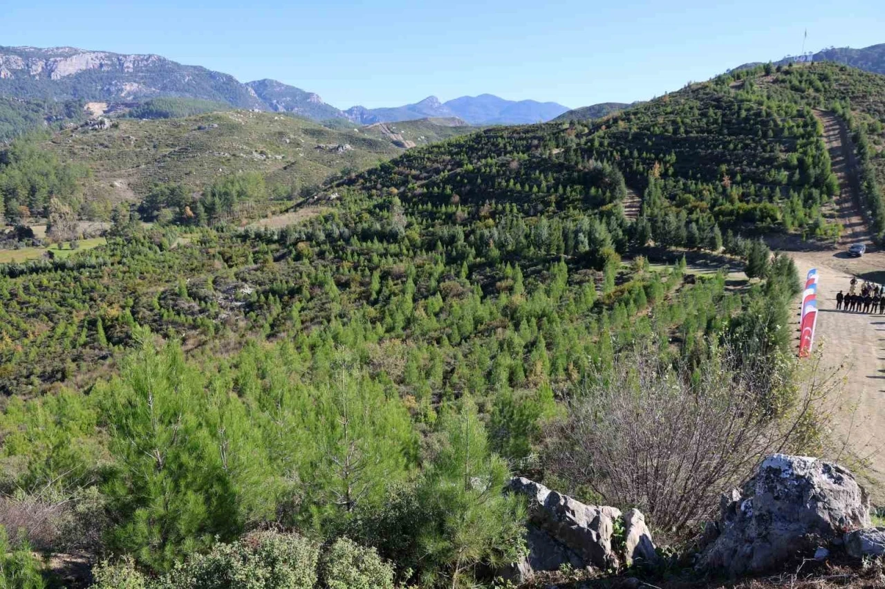 Yanan sahada fidanların ağaca dönüşmesini havadan helikopter ile gören Orman Genel Müdürü Bekir Karacabey, "Burası içinde bulunduğumuz saha maalesef 10 Temmuz 2019 gününde bir yangına maruz kalmış ve o zaman için hepimizi üzüntüye boğan bir sahaydı. Burası tekrar, o zaman ifade ettiğimiz gibi tekrar yeşil dokusuna, yeşil örtüsüne kavuştu. Tabii bu arada kayıp olan şey sadece yıllar değildi, bu yeşilliğin kaybolmasıyla ilgili birçok ağacımızla birlikte bu alanda bulunan birçok canlı, gördüğümüz görmediğimiz birçok canlı da hayatını kaybetmişti. Biz yanan alanlarımızın, yanan orman alanlarımızın tamamını tek bir metre karesi istisna olmaksızın yeniden ağaçlandırıyoruz, yeniden ormanlaştırıyoruz. İşte onun örneklerinden bir tanesini de burada hep birlikte şahit oluyoruz. 2019 yılında hemen 11 Kasım’ına geldiğimizde biliyorsunuz Milli Ağaçlandırma Günü 2019 yılında ilan edildi ve bizler burada 11 Kasım 2019 tarihinde Milli Ağaçlandırma Günü’nü kutlamak maksadıyla sahaya geldiğimizde sahanın tamamında arazi hazırlığı yapılmış, toprak işlemesi tamamlanmış, yeniden ağaçlandırmaya, yeniden fidan dikimine hazır hale getirmiştik. 450 bin fidan ve 35 ton tohumu da bu sahada toprakla buluşturarak şu anda hepimizi memnun eden görüntünün oluşmasını sağlamış olduk. Yanan alanlarda hemen ilk öncelikle sahadaki yanan ağaçları sahadan çıkardıktan sonra etüdünü yapıp, burada hangi usulle, hangi yöntemle tekrar ormanlaştırma çalışması yapacağımızı planladıktan sonra da en geç bir yıl içerisinde bu alanların tekrar ormanlaştırılmasıyla ilgili çalışmaları yürütüyoruz. Bugüne kadar ülkemizin hiçbir yanan alanın hiçbir metrekaresinde ormanlaştırma çalışmalarının dışında herhangi bir müdahale olmamıştır. Bunu tekrar tekrar ifade etmek istiyorum çünkü maalesef vatandaşlarımızın zihninde yanan alanların ormanın dışında maksatlarla kullanılacağıyla ilgili bir takım istifamlar, şüpheler oluşuyor. Bunu ortadan kaldırmış olmak adına tekrar ifade etmek istedim" dedi. "Akdeniz iklim kuşağında yangınlarla mücadele en başarılı ikinci ülkeyiz"