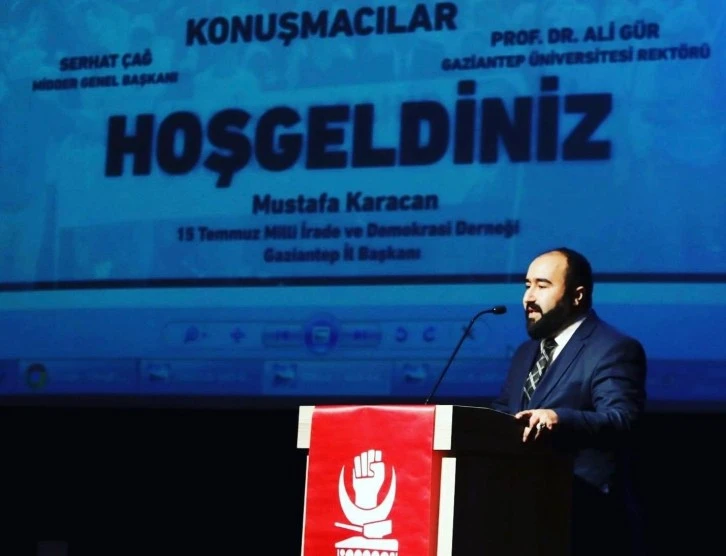 Darbe girişiminin 9. yılı nedeniyle bir açıklama yapan 15 Temmuz Milli İrade ve demokrasi Derneği Gaziantep Şube Başkanı Mustafa Karacan, "Bu hain darbe ve işgal gecesinde, Anadolu insanı melekleri imrendiren bir kıyam ile sabaha kadar canla başla mücadele ederken, dünyanın tüm mazlum milletlerinin yüreği bu necip millet ile atmış, gözyaşı ile yoğrulmuş dualar, vatanın her bir mabedinden yükselen sâlâlar mazlum milletimizi sarıp sarmalamıştır" dedi.