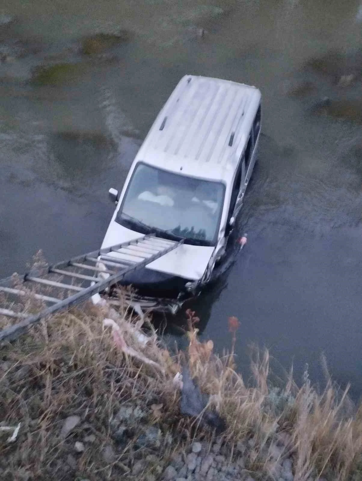 Kars’ta sürücüsünün direksiyon hakimiyetini kaybettiği hafif ticari araç yoldan çıkarak Kars Çayı’na düştü. Kazada sürücü yaralandı.