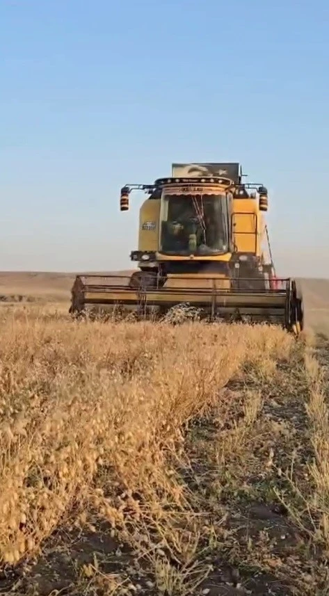Kars’ta nohut hasadı başladı. Baharda ekimi gerçekleştirilen nohut, dekar başına 100-150 kilo nohut verdi.
