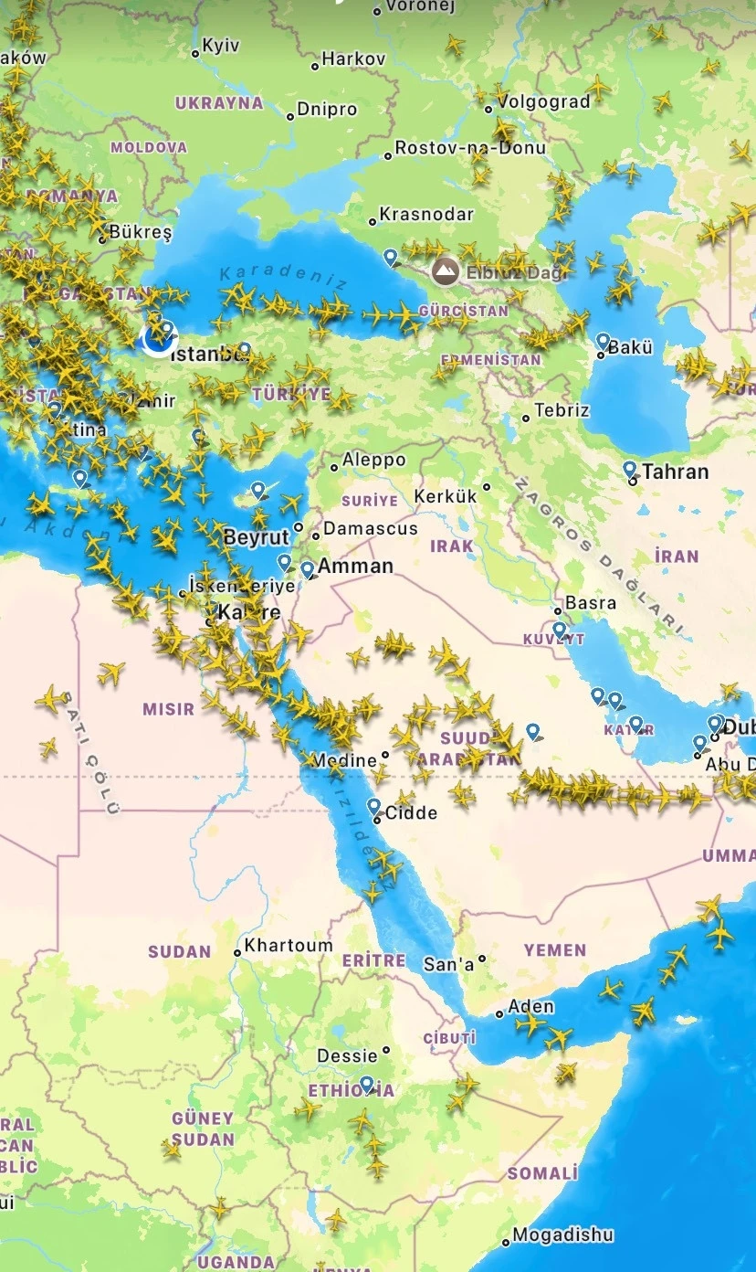 Türk Hava Yolları (THY) Basın Müşaviri Yahya Üstün sosyal medya hesabından yaptığı açıklamada, "Değerli yolcularımız, 23 Haziran 2025 tarihine planlı Bahreyn, Dammam, Doha, Dubai, Kuveyt, Abu Dabi ve Maskat seferlerimiz iptal edilmiştir. Uçuşlarınızla ilgili güncellemeleri web sitemizden takip etmenizi rica ederiz" dedi.