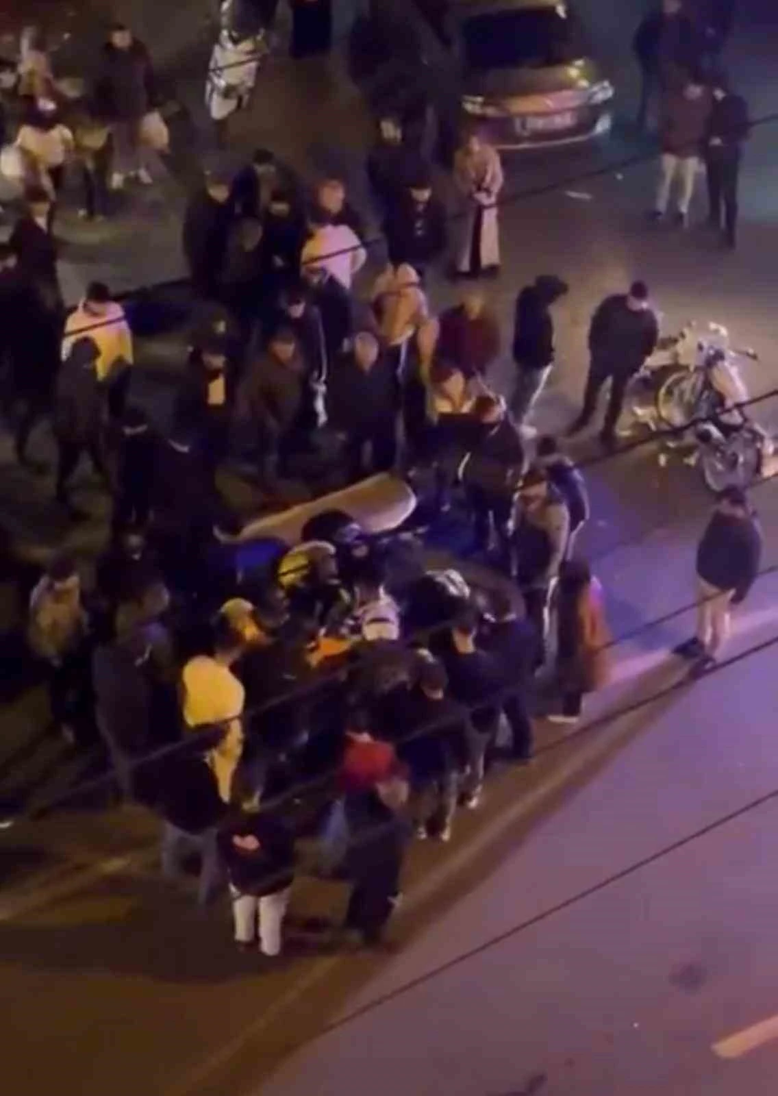 Kaza yapan motosiklet sürücüsünün acılar içinde bağırması kameraya yansıdı