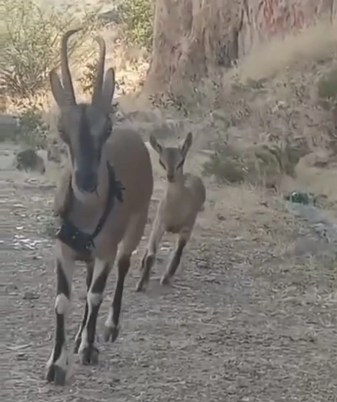 Yozgat’ta kanyonda yavrulayan anne keçi ile yavrularının görüntüleri izleyenlerin içini ısıttı.