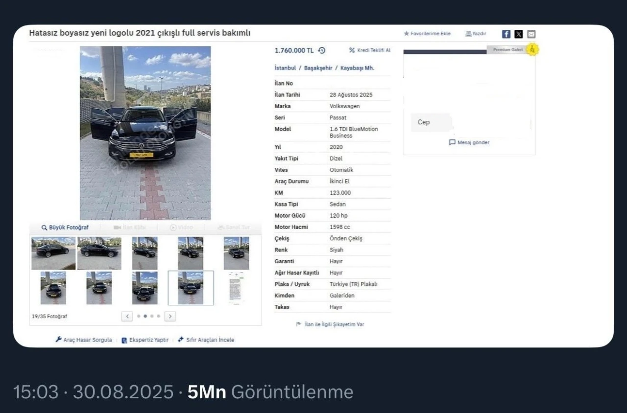 İstanbul’da 153 bin kilometredeki aracın kilometresini düşürerek 123 bin kilometrede satışa çıkardığı tespit edilen galericiye, Ticaret Bakanlığı tarafından ceza kesildi ve yetki belgesi iptal edildi. İstanbul’da 153 bin kilometredeki bir aracın kilometresini 123 bine düşürerek satışa çıkaran galericinin yetki belgesi Ticaret Bakanlığı tarafından iptal edildi. Vatandaşın sosyal medya platformu X üzerinden yaptığı ihbar üzerine bakanlık ekipleri harekete geçti. Konuya ilişkin açıklama yapan Ticaret Bakanlığı Basın Danışmanı Bekir Kaplan, şu ifadeleri kullandı: "08.08.2025 tarihinde gelen şikâyet üzerine; İstanbul Başakşehir’de faaliyet gösteren ilgili otomotiv satış firmasına ivedilikle denetim yapılmıştır. İncelemede, söz konusu aracın 153 bin km olmasına rağmen 123 bin km olarak ilana girildiği ve firmanın faaliyet adresinin ikamet amacıyla kullanıldığı tespit edilmiştir. Bu nedenle kurumun Yetki Belgesi iptal edilmiş, ayrıca firma hakkında hazırlanan rapor İç Ticaret Genel Müdürlüğü’ne sunulmuştur. Bakanlığımız, vatandaşımızın hakkını, hukukunu gözetmeye devam edecektir."
