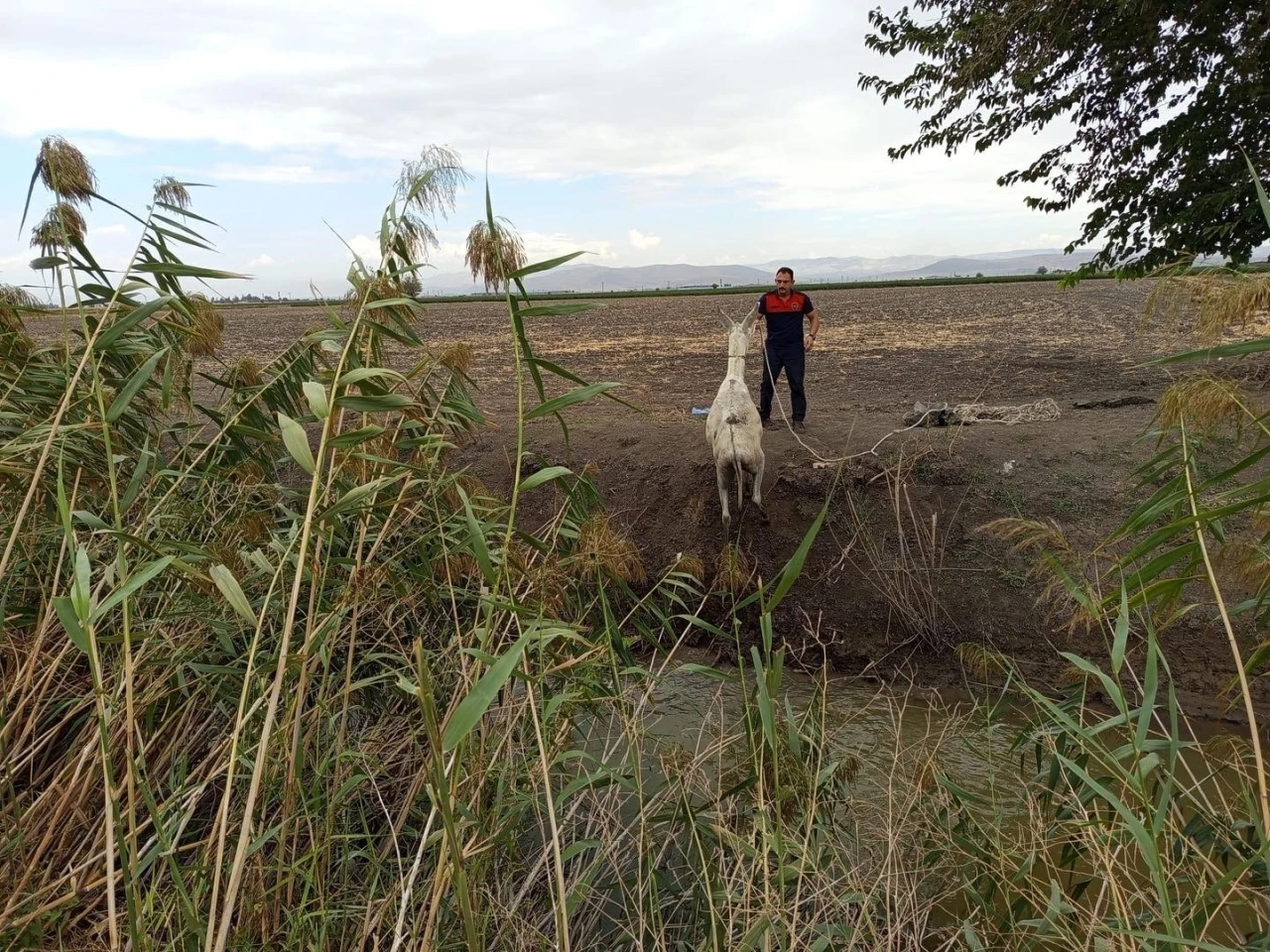 Hatay’da sulama kanalına düşerek mahsur kalan eşek, itfaiye ekipleri tarafından kurtarıldı.