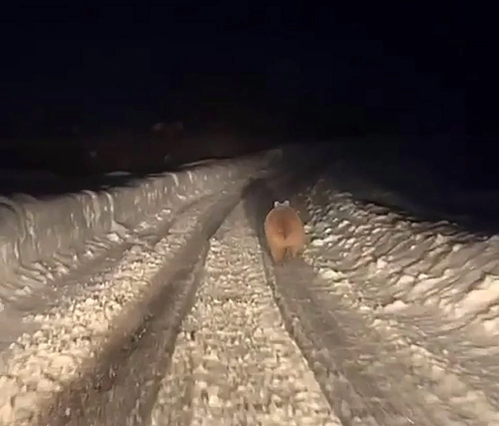 Kış mevsimi gelmeden ayılar vücutlarının ihtiyaç duyduğu şekilde beslenerek kış uykusuna daldı. Ancak sert geçen kış mevsimi ve yağan kara rağmen uyumayan ayılarda oldu. Sivaslı besici Fatih Pınar, hayvan ticareti için gittiği Yozgat’tan dönerken önüne bir boz ayı çıktı. Pınar aracıyla ayıyı kovalarken, aracın önünde koşan ayı ise aşırı kilosu ile dikkat çekti.