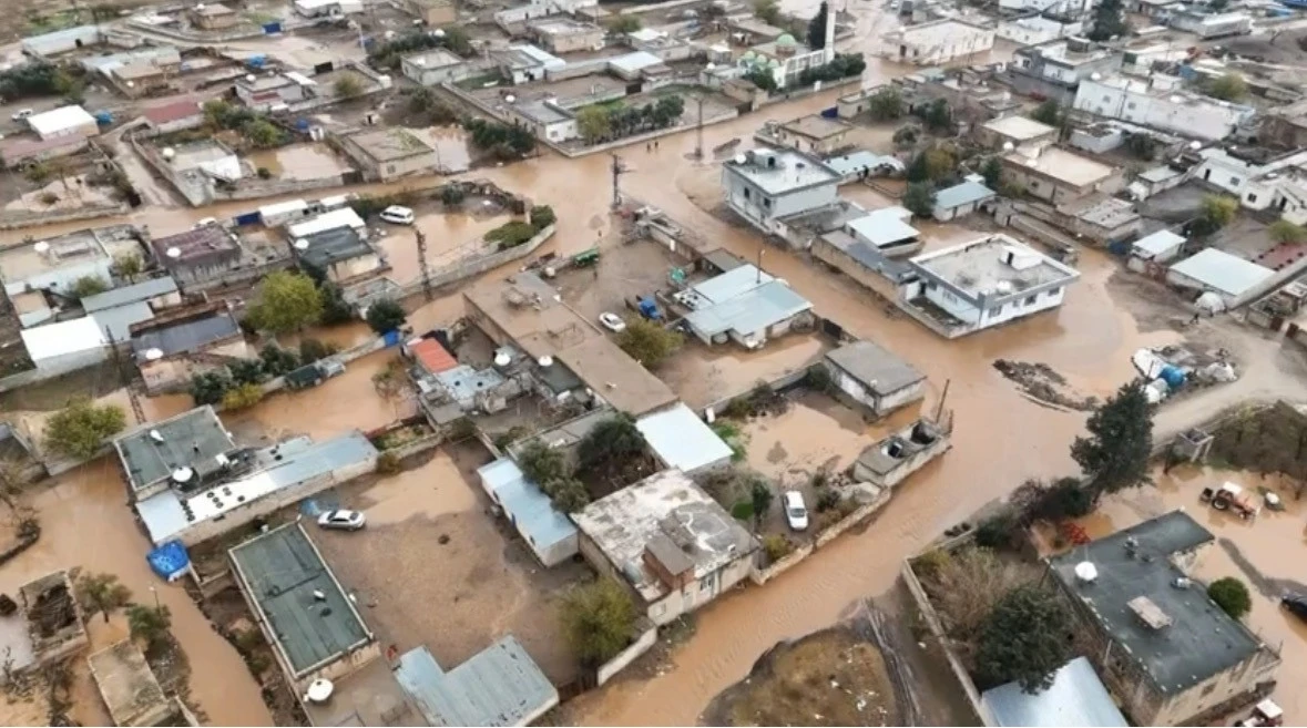 Mardin’in Kızıltepe ilçesinde etkili olan sağanak sonrası tarım arazileri, köy mezarlığı ve bazı evlerin avluları su altında kaldı. Dronla çekilen görüntülerde, köyün büyük bir bölümünde geniş su birikintilerinin oluştuğu, tarım arazilerinin zarar gördüğü ve evlerin çevresinin tamamen suyla kaplandığı görüldü. Bölgede hasar tespit çalışması başlatılırken, yetkililer yağışların devam edebileceği uyarısında bulunarak, vatandaşları tedbirli olmaya çağırdı.