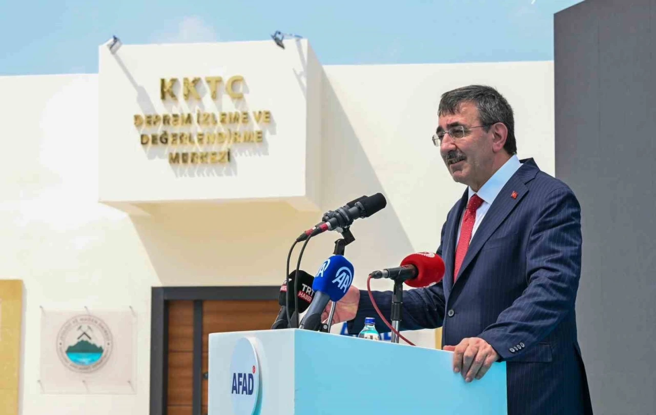 Cumhurbaşkanı Yardımcısı Cevdet Yılmaz yaptığı konuşmada, merkezin ülkeye hayırlı olmasını diledi. Merkezin, Türkiye Cumhurbaşkanı Yardımcılığının finansmanı ve AFAD’ın destekleriyle "KKTC Deprem Analiz Sistemi Altyapısının Kurulması Projesi" kapsamında kurulduğunu ifade eden Yılmaz, "Projesi kapsamında attığımız her adım, kardeşliğimizin mühendislikte, teknolojide ve afet yönetiminde somut karşılık bulduğu birer eser olarak hayat bulmuştur. Afetlere karşı dayanıklı bir toplum inşa etme hedefi doğrultusunda atılan bu adımlar, Sayın Cumhurbaşkanımız Recep Tayyip Erdoğan’ın liderliğinde şekillenen vizyoner yaklaşımın sahadaki yansımalarından biridir. Türkiye’nin tecrübesini ve teknolojik kapasitesini KKTC ile paylaşma iradesi, Sayın Cumhurbaşkanımızın güçlü desteğiyle daha da kurumsallaşmıştır. AFAD’ın mali ve teknik katkılarıyla üç aşamalı şekilde yürütülen çalışmalarla, önce gözlem ağı genişletilmiş, 4 hızölçer, 4 GNSS istasyonu ve Yeni Erenköy’de bir derin kuyu deprem gözlem istasyonu devreye alınmıştır. Bu altyapının en stratejik halkalarından biri olan KKTC Deprem İzleme ve Değerlendirme Merkezine, AFAD tarafından geliştirilen yerli ve milli deprem yazılımları başarıyla entegre edilmiştir. Böylece, veri temelli karar alma süreçlerini destekleyen, bilimsel temellere dayanan güçlü bir yapı KKTC’ye kazandırılmıştır" ifadelerini kullandı.