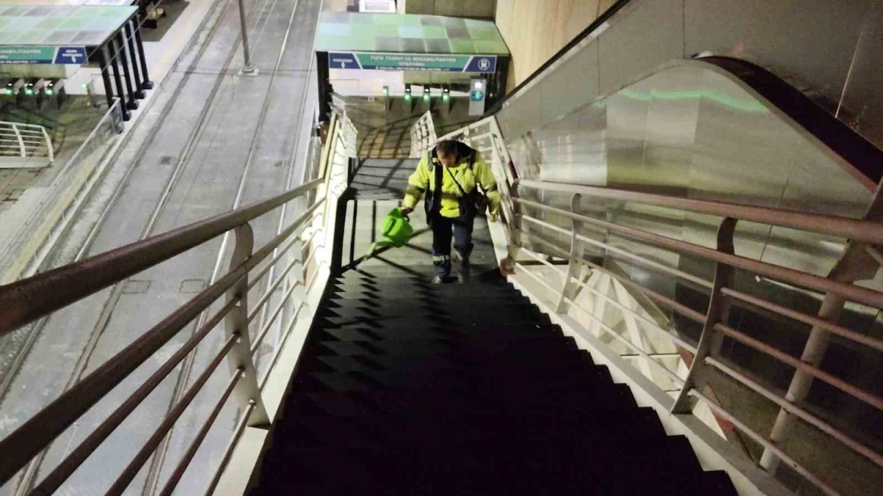 Kocaeli’de belediye ekipleri, kış aylarında vatandaşların güvenli ulaşımını sağlamak amacıyla üst geçitlerde buzlanma ve don olaylarına karşı özel solüsyonla çalışma yürütüyor.