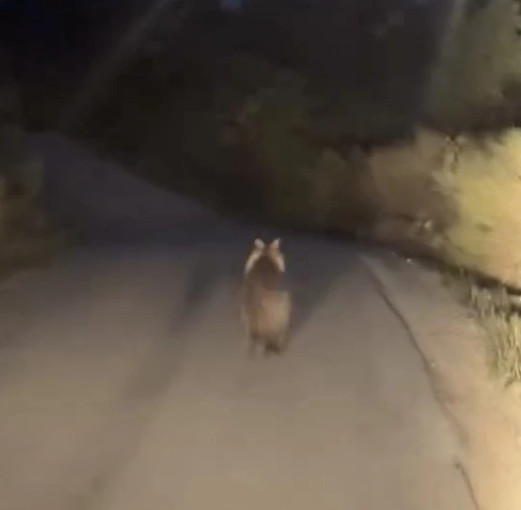 Çanakkale’nin Biga ilçesinde seyir halinde olan aracın önüne çıkan ayı bir süre araç ile adeta yarıştı. O anlar cep telefonu kamerasına yansıdı.