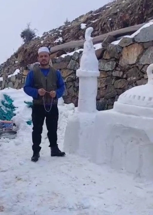 Kahramanmaraş’ta bir vatandaş, köyünde cami bulunmamasına dikkat çekmek amacıyla kardan cami yaptı.