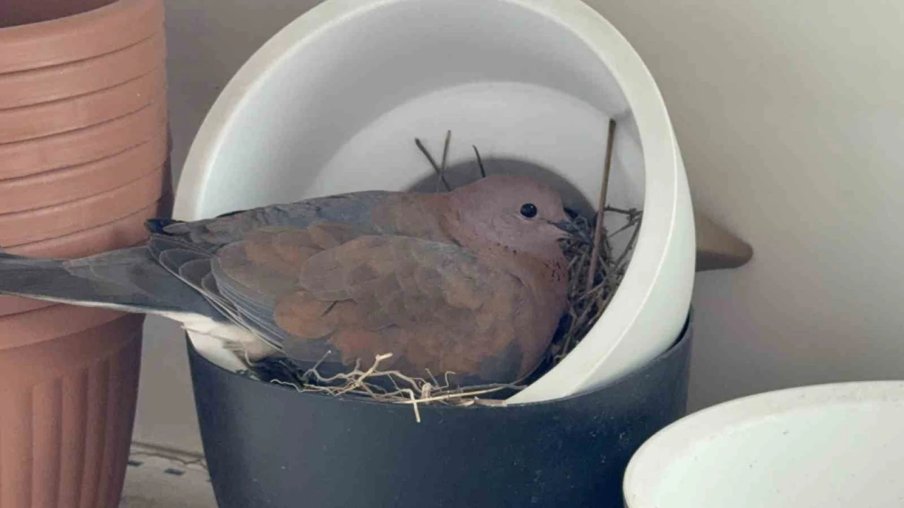 Olay, Bahçeşehir Bağlantı Yolu üzerindeki bahçe ürünleri satışı yapılan bir işletmede yaşandı. Dükkanın dış kısmında sergilenen bir saksının içine kumru yuva yaptı. İşletmeden saksı almak isteyen vatandaşların fark ettiği yuva üzerine işletme, saksı satışını geçici olarak durdurdu.
