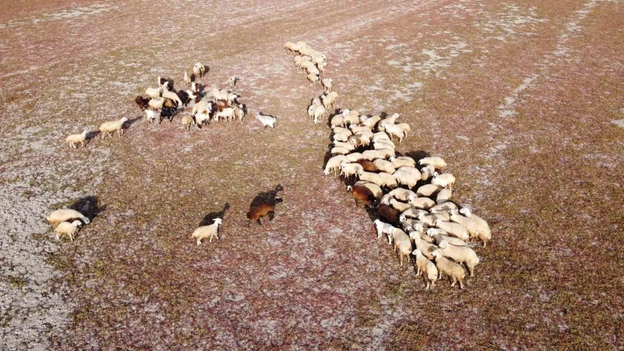 Dron kamerasıyla kaydedilen görüntülerde, Gelingüllü Barajı’nın büyük oranda kuruduğu ve ortaya çıkan geniş alanlarda koyun sürülerinin otlatıldığı görüldü. Kuraklığın şiddetini gözler önüne seren görüntülerde, baraj havzasındaki çatlamış toprak ve hayvanların yayıldığı alan dikkat çekti.