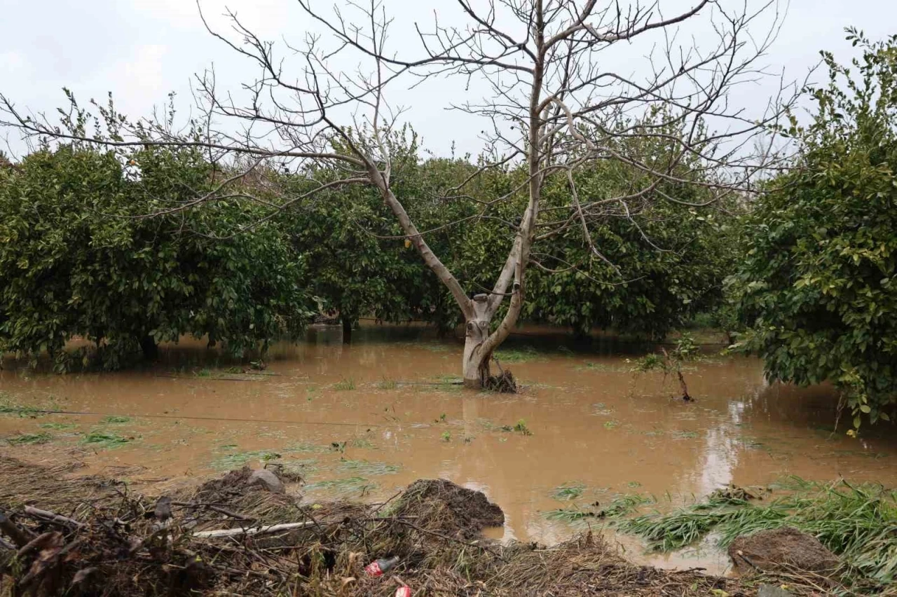 Aydın’ın Kuşadası ilçesinde etkili olan sağanak yağışla beraber yaşanan sel baskını sonrasında Davutlar Mahallesi’nde bulunan bahçeler göle döndü, meyve ağaçları sular altında kaldı.