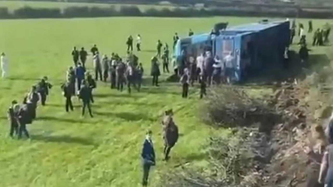 Daily Mail'deki habere göre otobüs, Belfast'a 30 mil uzaklıktaki kırsal bir yolun kenarındaki tarlaya devrildi. Çocuklar, otobüsün yanında beklerken görüldü.