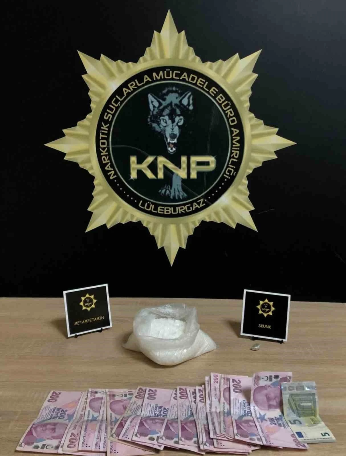 Edinilen bilgiye göre, Lüleburgaz İlçe Emniyet Müdürlüğü ekipleri, durumundan şüphelendikleri bir motosikleti kontrol amaçlı durdurdu. Yapılan üst aramasında, motosiklet sürücüsü O.A. ve O.Ç isimli şahısların üzerinde 508 gram metamfetamin 1 gram esrar, suçtan elde edildiği değerlendirilen 5 bin Türk Lirası ve 5 Euro para ele geçirildi.