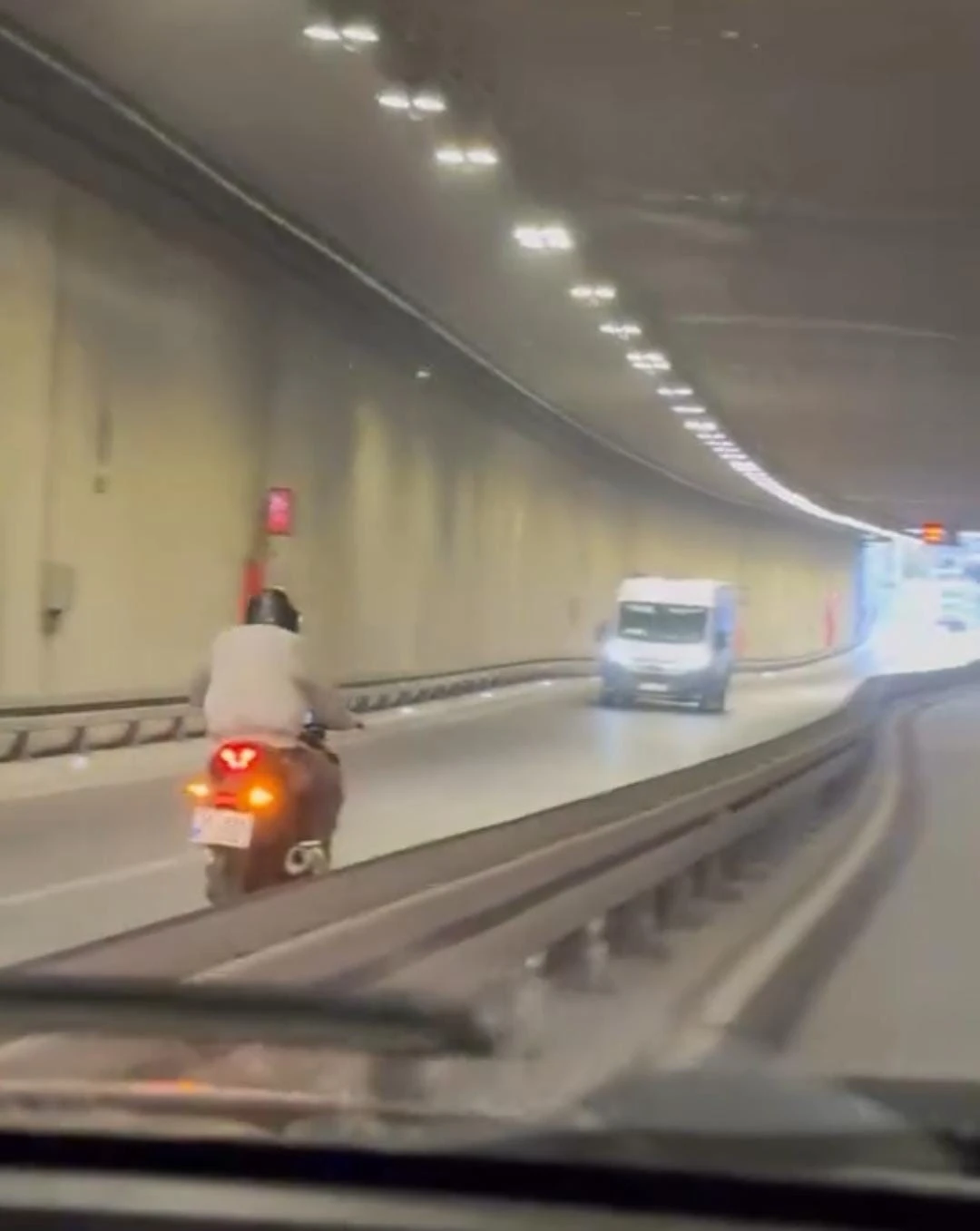 Maltepe’de tünel içerisinde ters şeritte ilerleyen motosiklet sürücüsünün tehlikeli yolculuğu cep telefonu kamerasına yansıdı. Olay, Maltepe Cumhuriyet Meydanı tünelinde sabah saatlerinde meydana geldi. Tünel içerisine giren motosiklet sürücüsü, ters yönde ilerledi. Trafiği hiçe sayarak karşı yönden gelen araçların şeridinde seyreden sürücü, tünel içinde kendi yolundaymış gibi ilerleyerek hem kendi canını hem de diğer sürücülerin hayatını tehlikeye attı. O anlar başka bir sürücünün cep telefonu kamerasına yansıdı. Görüntülerde motosikletlinin araçların üzerine doğru gelmesine rağmen yoluna devam ettiği, sürücülerin ise muhtemel kazayı önlemek için yavaşladığı görülüyor.