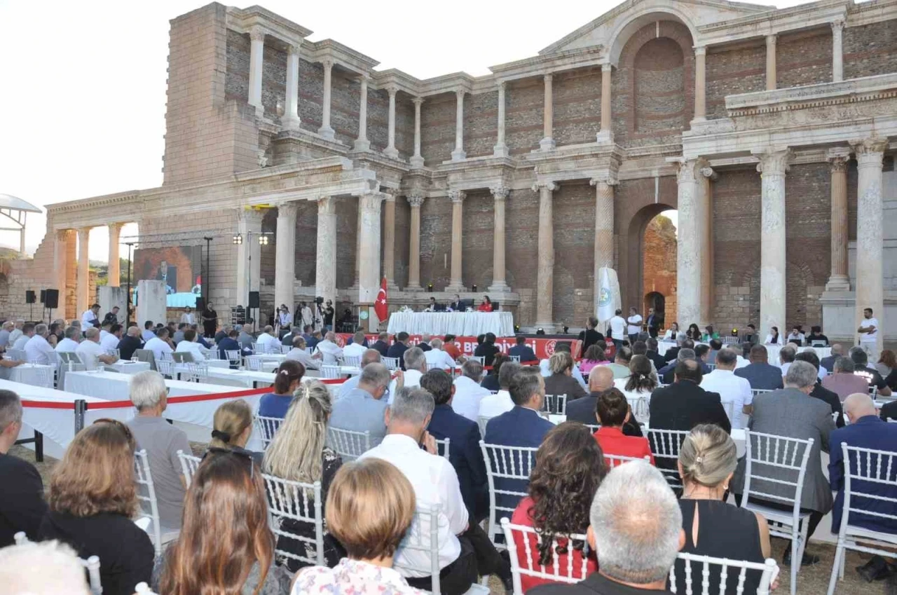 Toplantının açılış konuşmasını yapan Manisa Büyükşehir Belediye Başkanı Besim Dutlulu, "Bugün meclis toplantımızı çok özel bir alanda gerçekleştireceğiz. Çok güzel bir ambiyans var. Biliyorsunuz Sardes bir zamanlar Lidya Uygarlığının başkenti idi. Bu uygarlık 5 bin yılı aşkın köklü bir geçmişe sahip. Sart Antik Kenti ve Bintepe Tümülüsleri 12 Temmuz 2025 tarihinde UNESCO Dünya Miras Listesi’ne dahil edildi. Bu yönüyle bugün yalnızca bir meclis toplantısı değil tarihle iç içe bir toplantı gerçekleştiriyoruz. Sart bilinen tarihe göre paranın ilk kez basıldığı yer olarak medeniyetin ekonomik temellerinin atıldığı bir merkez. Ayrıca Sardes’in yaklaşık 5 kilometre kuzeyinde Gölmarmara yolu üzerinde Bintepeler ismiyle anılan yaklaşık 85 tane Lidya Kraliyet Mezarı da bulunuyor. Yine Sart’ta bulunan Artemis Tapınağı Batı Anadolu’nun en büyük 7 tapınağından biri olarak dikkat çekiyor. Bu antik kent adeta bir açık hava müzesi niteliğinde. Bu tarihi alanda alacağımız kararların hem ilimiz, hem de gelecek nesillerimiz için hayırlı olmasını diliyorum. Bu yapının ayağa kalmasında emeği geçen başta İl Kültür ve Turizm Müdürlüğümüz olmak üzere ev sahipliğinden dolayı Salihli Belediye Başkanımız Mazlum Nurlu’ya teşekkür ediyorum" dedi.