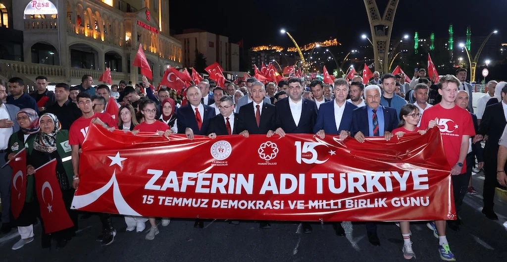 Mardin’de 15 Temmuz Demokrasi ve Milli Birlik Günü etkinlikleri, binlerce vatandaşın katılımıyla gerçekleştirildi. Programlar yürüyüşle başladı, sergi ziyareti, konuşmalar ve demokrasi nöbetiyle gece boyunca devam etti.