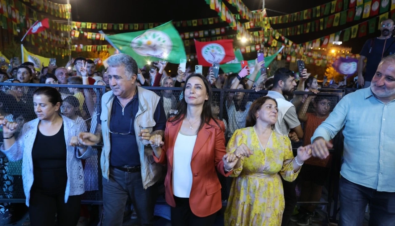 Demokratik Kurumlar Platformu tarafından Mardin’in Artuklu ilçesinde yer alan 15 Temmuz Demokrasi ve Şehitler Parkı’nda düzenlenen “Barış ve Demokratik Toplum Halk Şöleni” renkli görüntülere sahne oldu. Etkinlikte barış mesajları verildi, havai fişekler atıldı, şölen alanını dolduran katılımcılar zılgıtlar eşliğinde halaylar çekti.