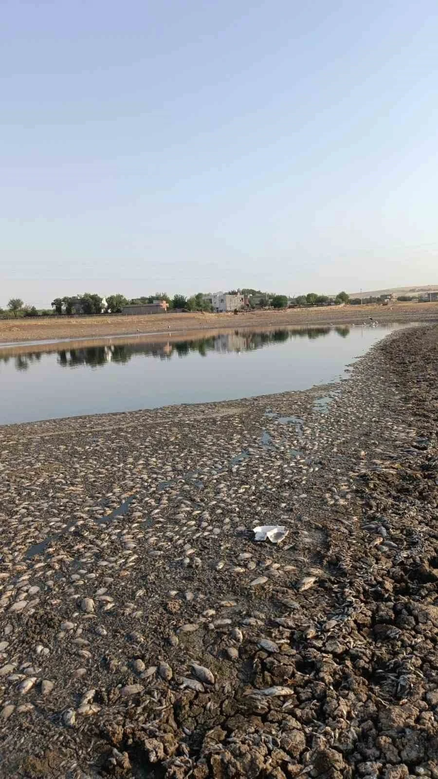 Mardin’de suyu çekilen gölette binlerce balık telef oldu.