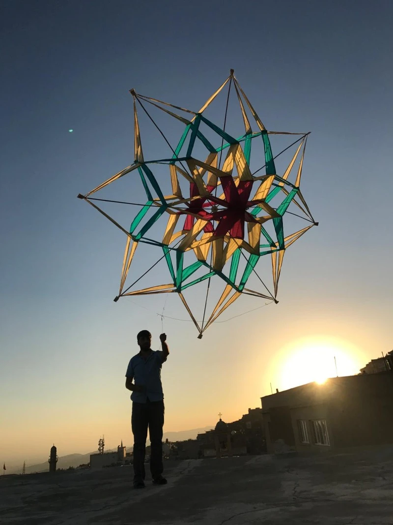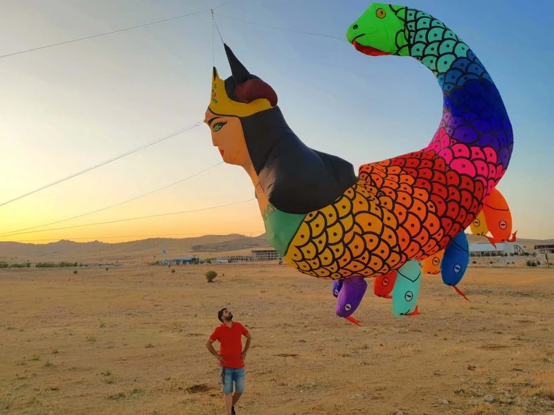 “14 yaşından bu yana kendi uçurtmalarımı dikiyorum. Mardin’in mitolojik figürlerini, hikâyelerini ve renklerini gökyüzüne taşıyorum,” diyen Zahit Mungan, Katar’da da Şahmeran ve Melekê Tavus temalı uçurtmalarını sergilemeyi planlıyor.