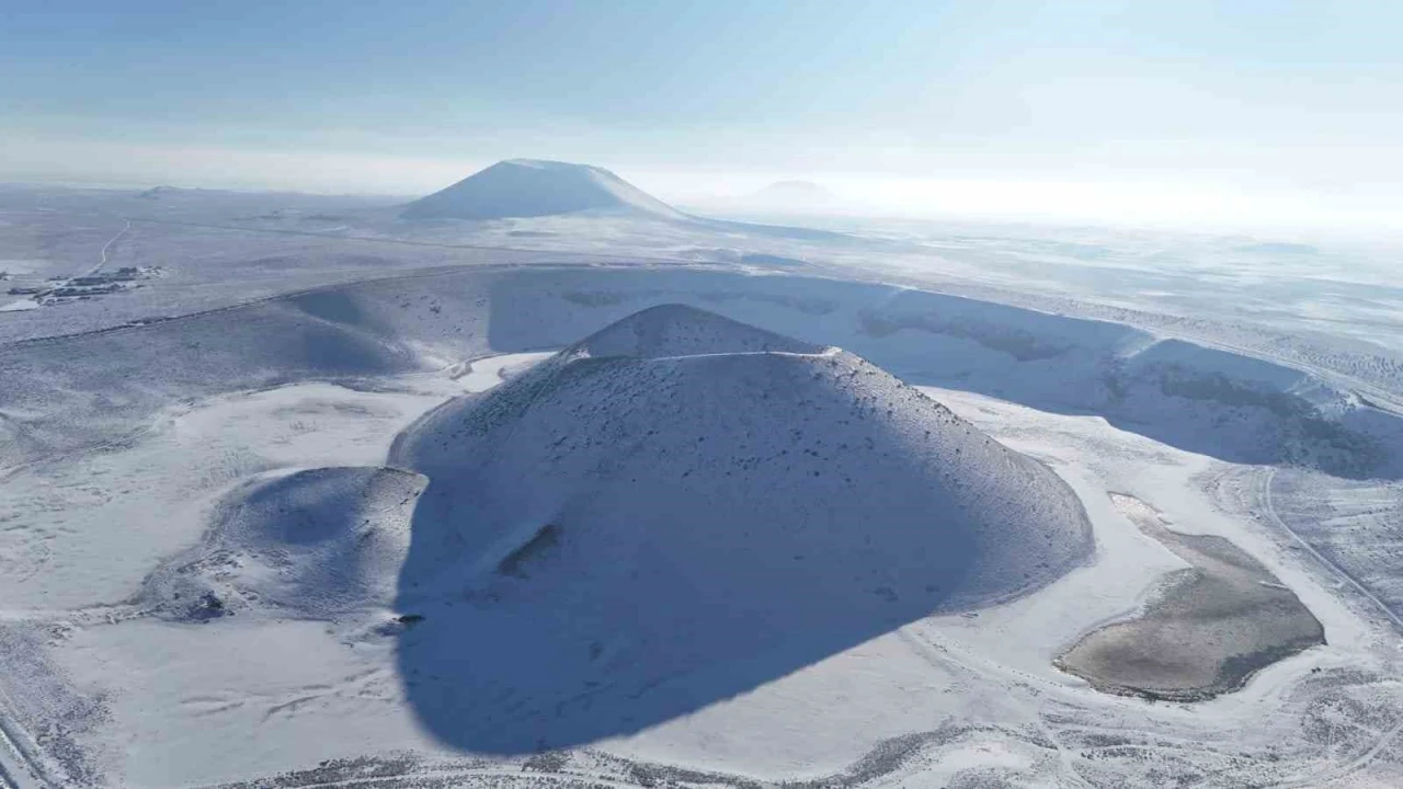 Konya’nın Karapınar ilçesinde bulunan Meke Gölü, kar yağışının ardından beyaz gelinliğini giyerek kartpostallık manzaralar oluşturdu. Meke Krater Gölü, fotoğrafçılar, doğa tutkunları ve tatilcilerin büyük ilgisini çekiyor.